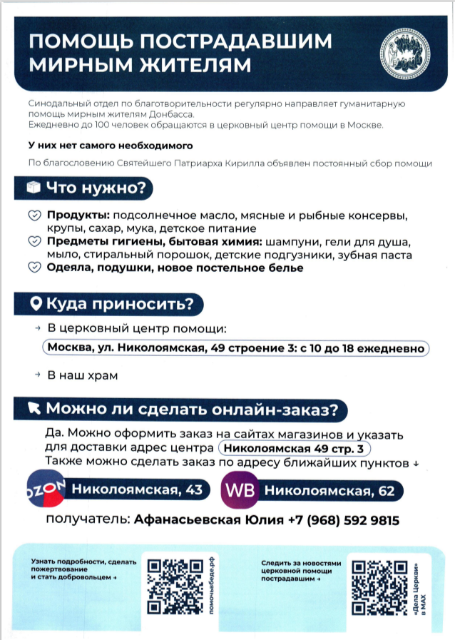 Телеграм-канал Информационной службы Московской епархии Русской Православной Церкви: https://t.me/pravmos